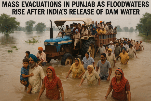 Lahore, Pakistan — Tens of thousands of residents in eastern Punjab have been forced to leave their homes after India released water from its swollen dams and rivers into low-lying…